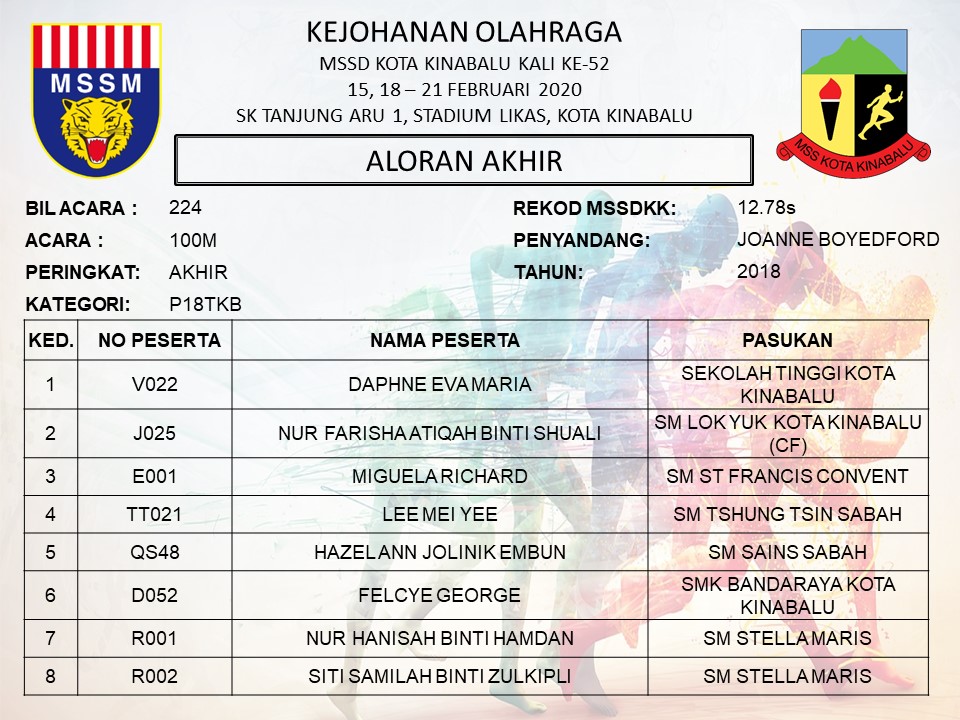 ALORAN AKHIR: 100 P18TKB Date: February 18, 2020 Author: Admin MSSDKK Comments: 0 Comments Categories: 2020 Aloran, 2020 ALORAN SM, P18TKB, Sekolah Menengah Kongsi:
